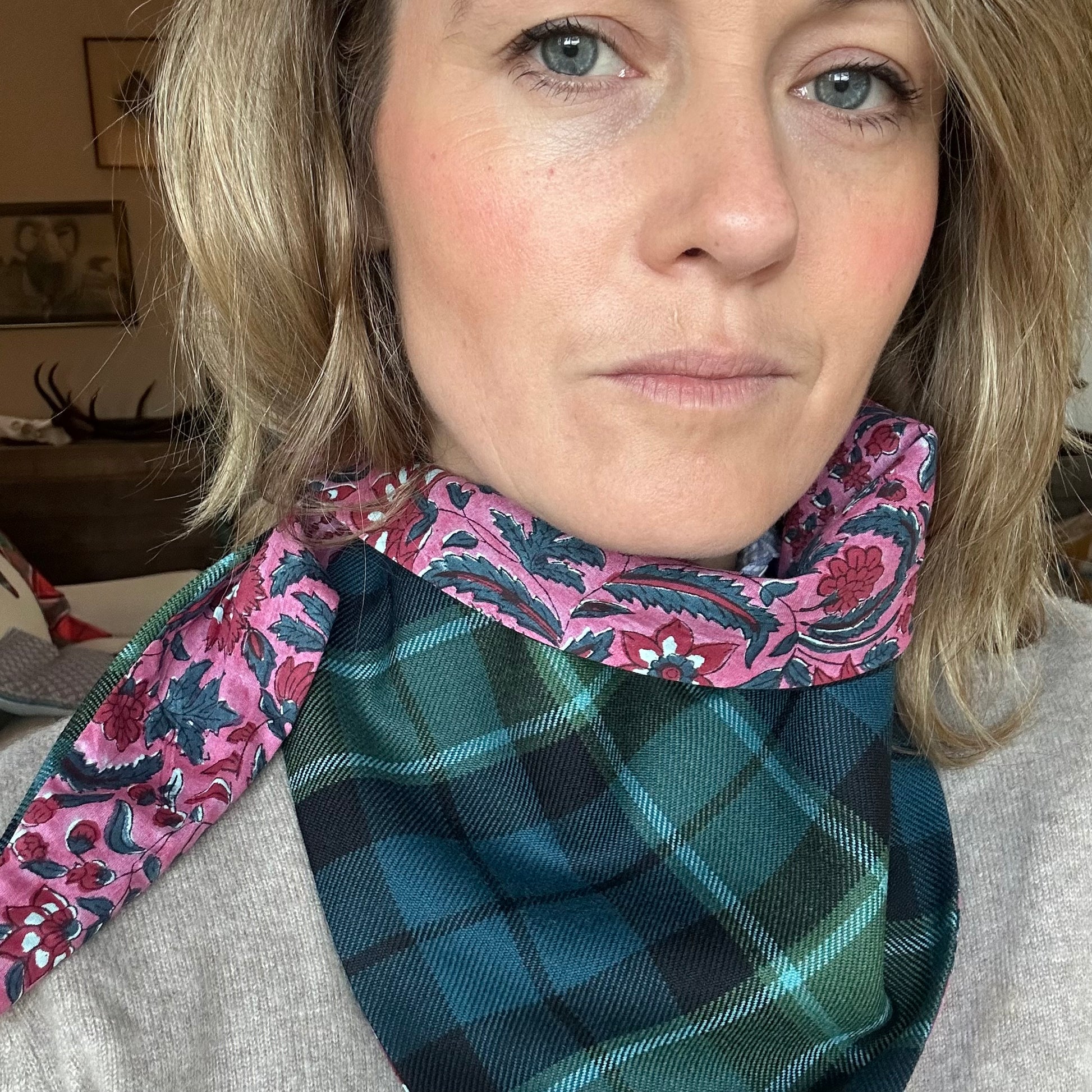 Our Antana tartan Scout scarf is made from 100% woollen tartan and our signature hand block printed organic cotton. This tartan neckerchief is super soft and comfortable to wear. It is a fun and versatile addition to any outfit as each one is completely unique and can be worn in lots of different ways.