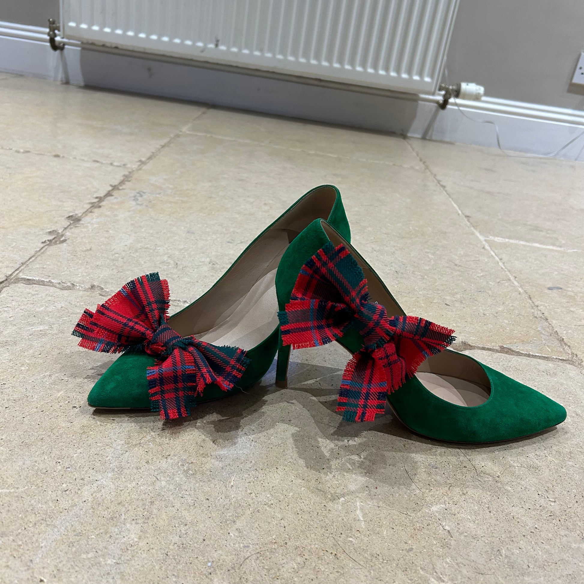 This decorative accessory features a tartan bow creating a luxurious embellishment for special occasions. Perfect for elevating evening shoes or adding something special to wedding attire as a fashion ornament - shoe clips add a touch of elegance to your heels - they can be clipped anywhere onto a shoe and look lovely on both the front or back, or at the side.