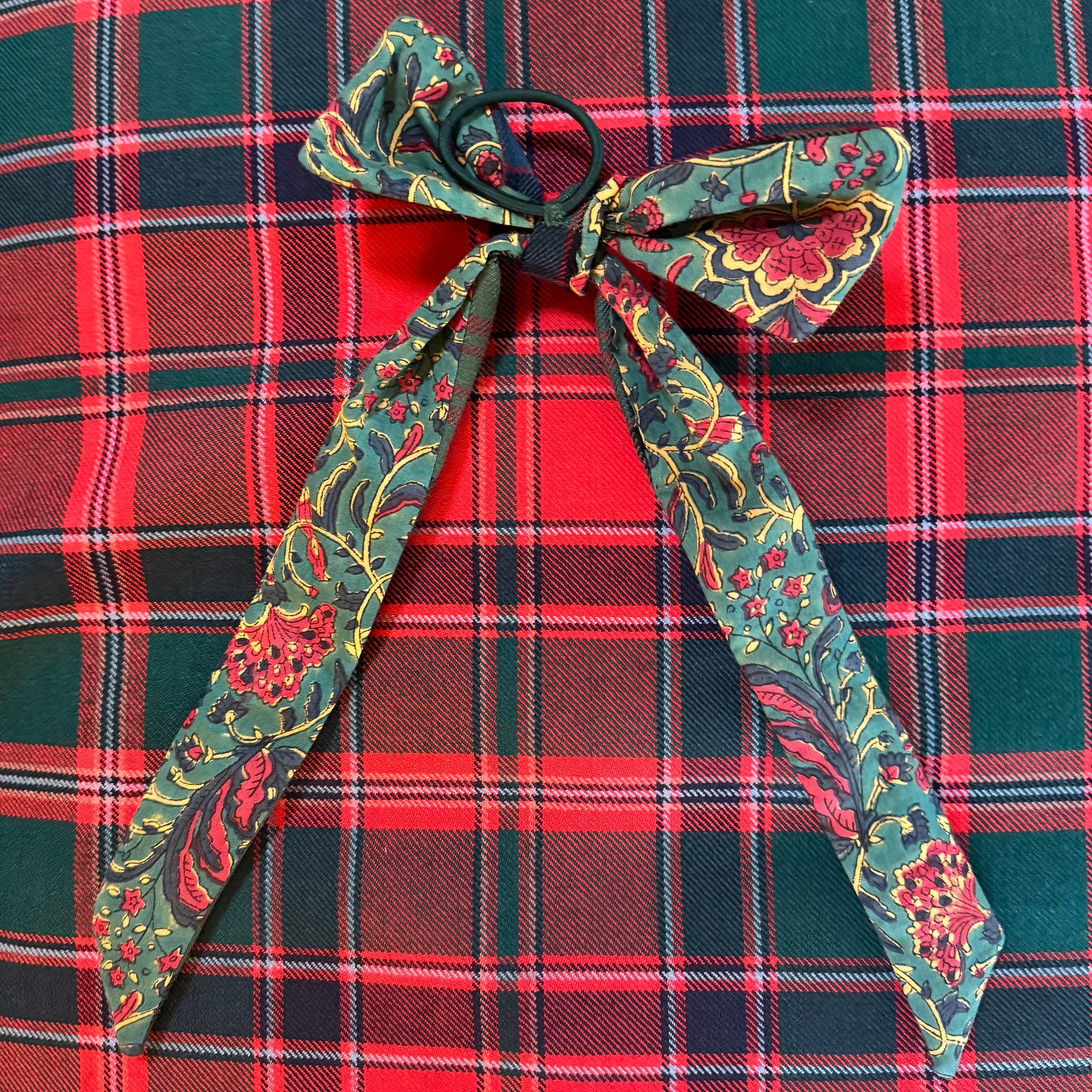 One of a kind tartan and block print hair bows. Each bow is made from 100% wool tartan and our organic cotton. The elastic tie fastening makes these easy to wear and style in your hair!