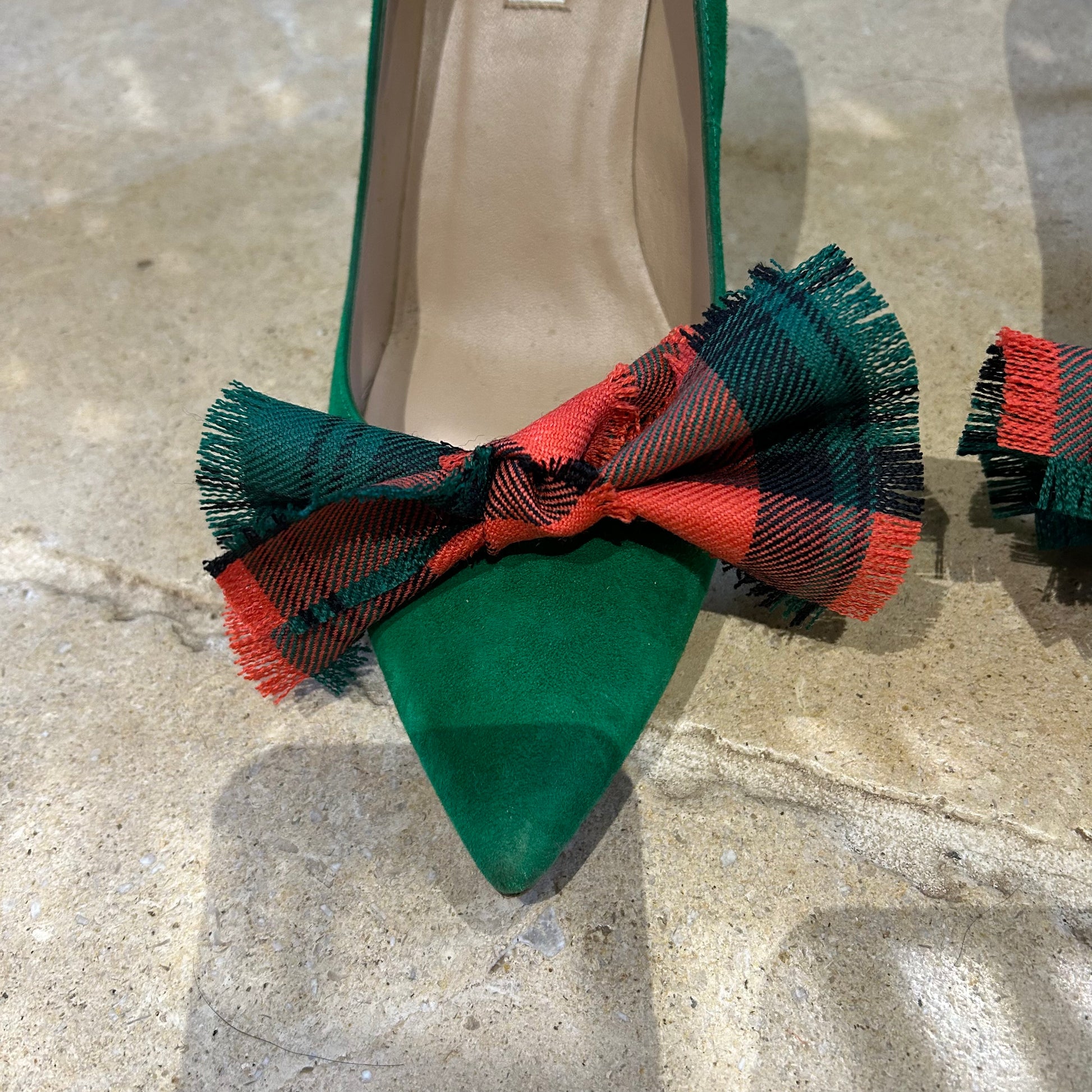 This decorative accessory features a tartan bow creating a luxurious embellishment for special occasions. Perfect for elevating evening shoes or adding something special to wedding attire as a fashion ornament, pair with simple heels to let this eye-catching decoration take centre stage at your next event. Use these elegant clips to accessorise your favourite shoes for an instant style upgrade.