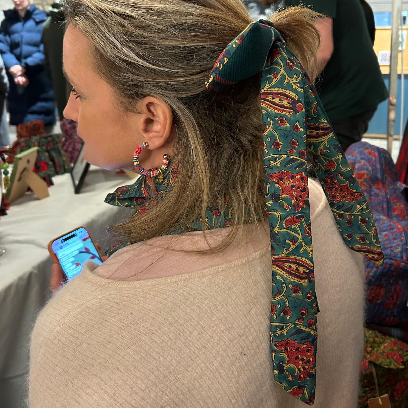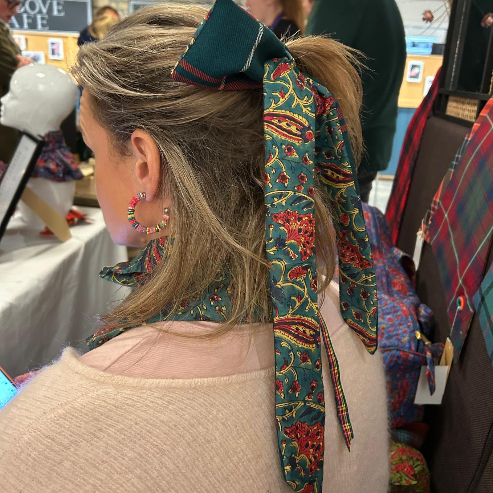 One of a kind tartan and block print hair bows. Each bow is made from 100% wool tartan and our organic cotton. The elastic tie fastening makes these easy to wear and style in your hair!